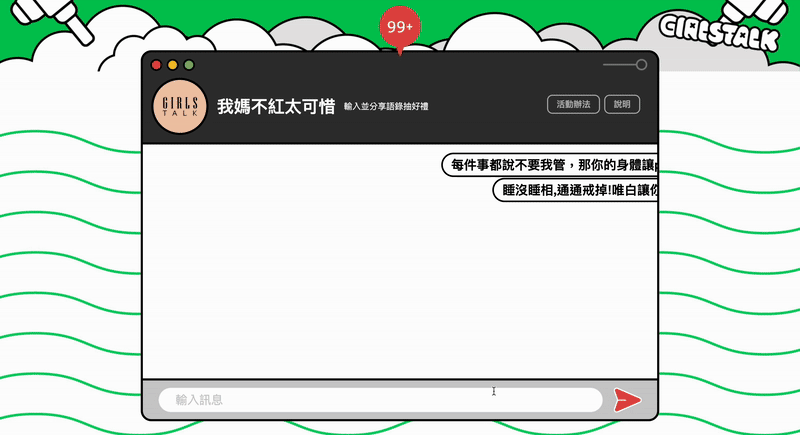 — 使用者輸入文字,按下送出後會即時顯示於牆上
