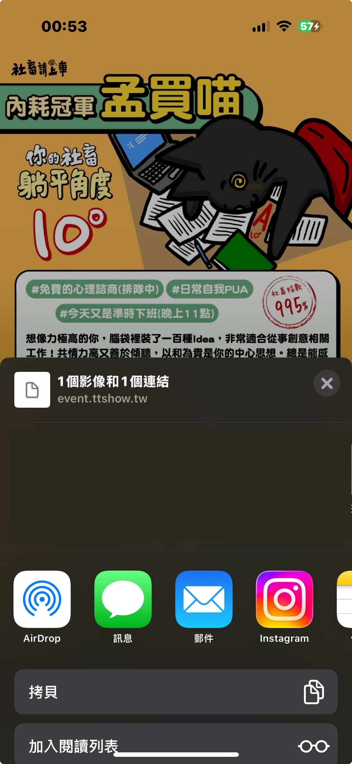 手機版則是顯示手機內建分享功能