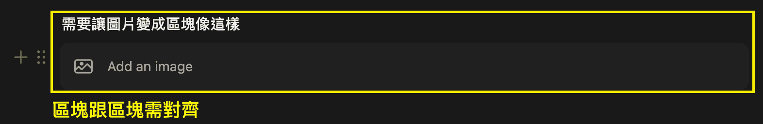 如果圖片是像這樣放,對 notion 來說不是區塊就會顯示不出來