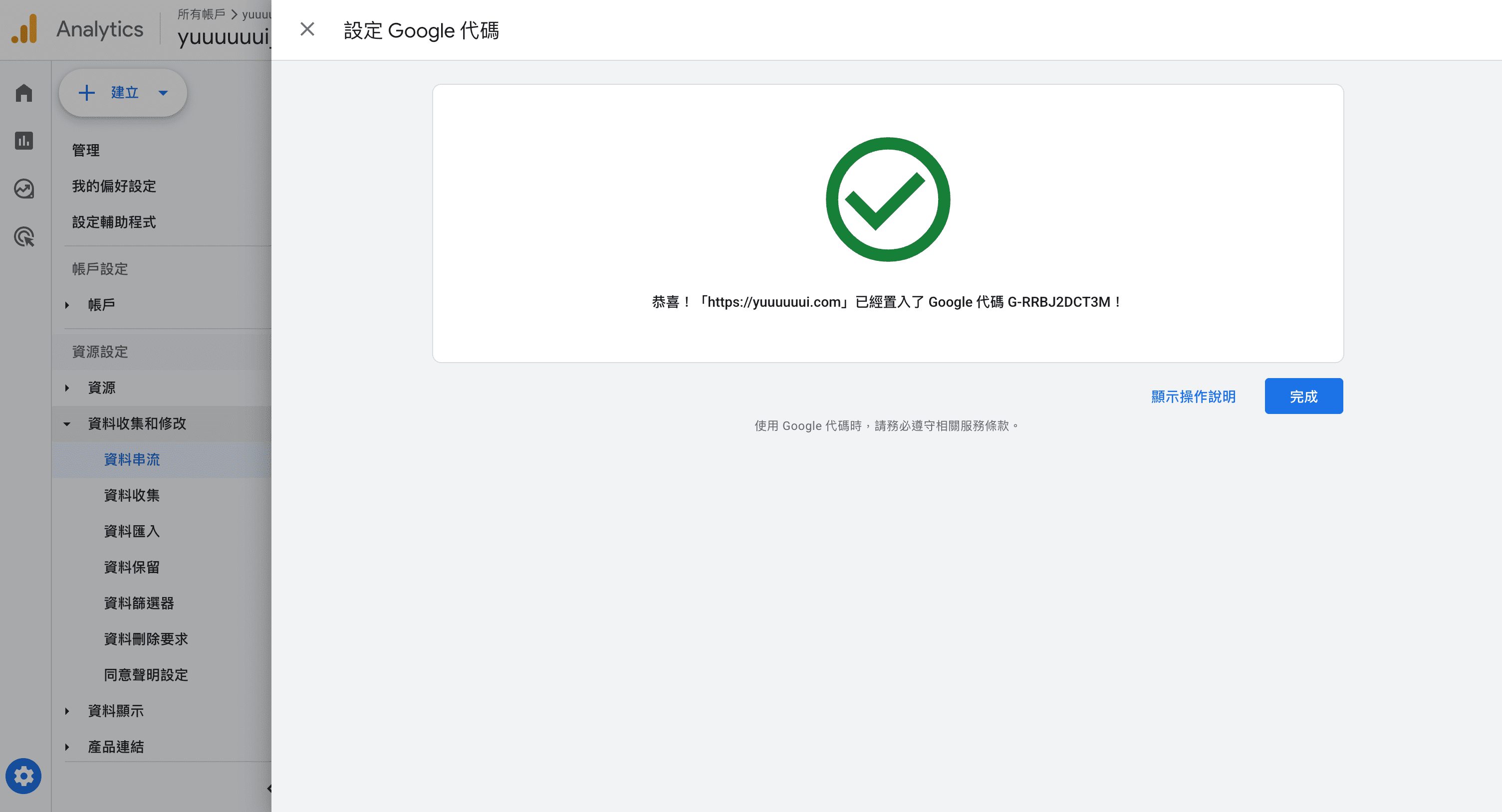 6 . 最後可以去 Google Analytics 的網站裡有沒有成功